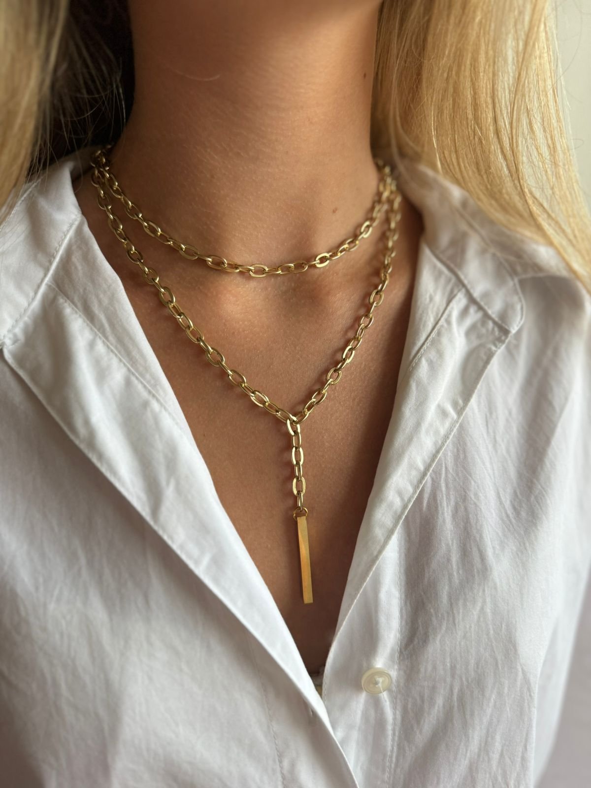 Collar de metal con baño dorado y rectángulo bañado en oro (regulable)